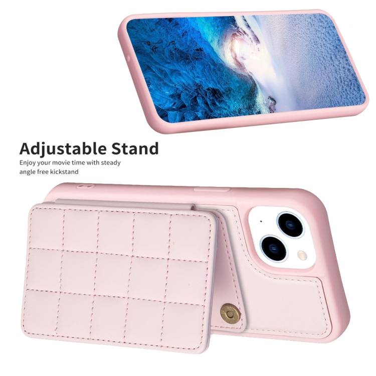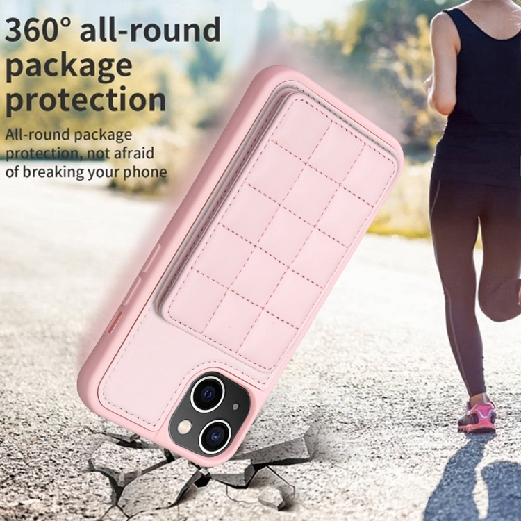 Funda para Teléfono iPhone 15 Grid Card Slot Holder (Rosa)