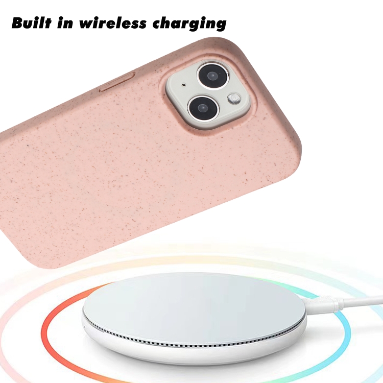 Funda para Teléfono iPhone 15 Material de Paja Magnético Magsafe de Trigo + TPU (Rosa)
