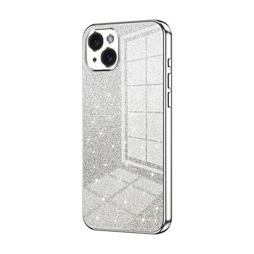 Estuche para Teléfono iPhone 15 Plus Galvanizado con Polvo de Brillo Degradado (Plateado)