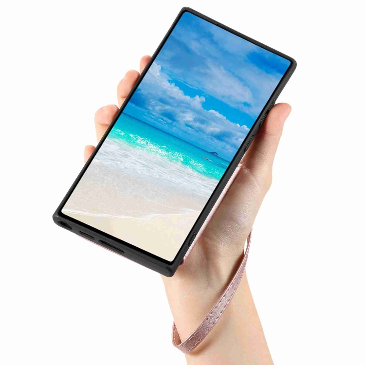 Estuche para Teléfono iPhone 15 Plus Rfid con Ranuras para Tarjetas y Cremallera (Oro Rosa)