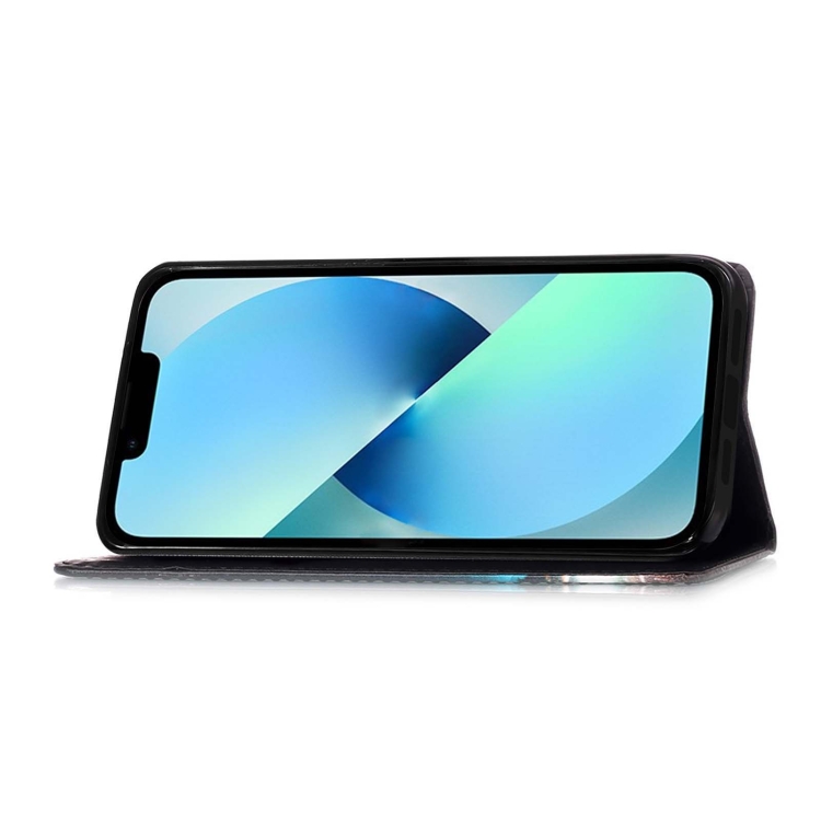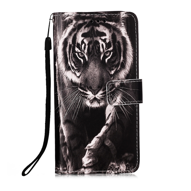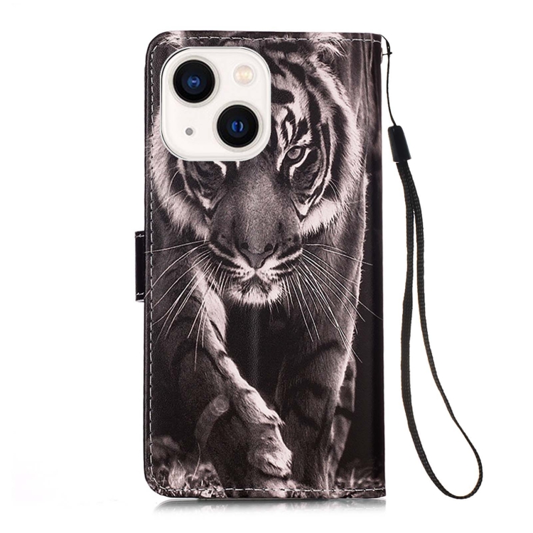 Funda para iPhone 15 Plus Cuero Tejido Liso Patrón Tigre Blanco y Negro