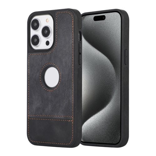 Funda para iPhone 15 Pro Empalme Costura Caja de Teléfono de PU con Recorte Hueco (Negro)
