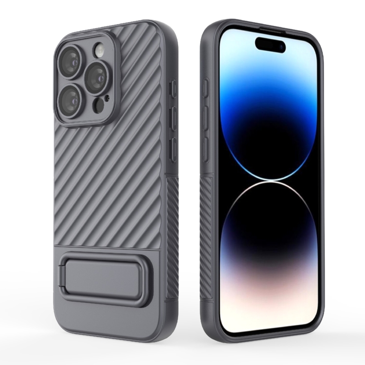 Estuche para Teléfono TPU iPhone 15 Pro Textura Ondulada Película para Lentes (Gris)