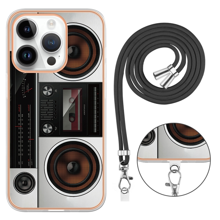 Estuche para Teléfono iPhone 15 Pro Imd Doble Cara con Galvanoplastia y Cordón (Radio Retro)