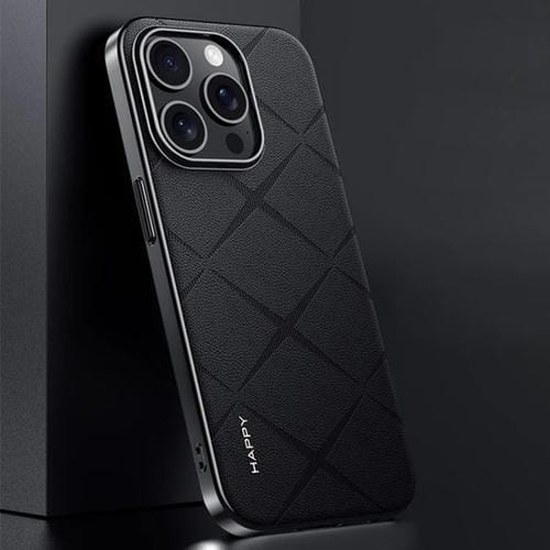 Funda para iPhone 15 Pro Cuero Liso Protección PC (Negro)