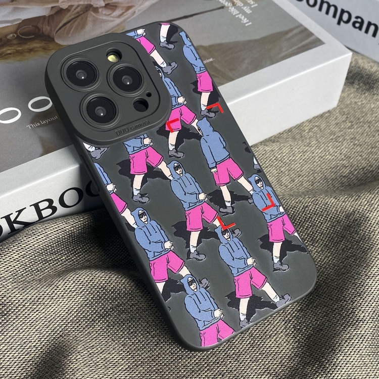 Funda de teléfono iPhone 15 Pro Silicona Líquida Patrón de Peatones (Negro)