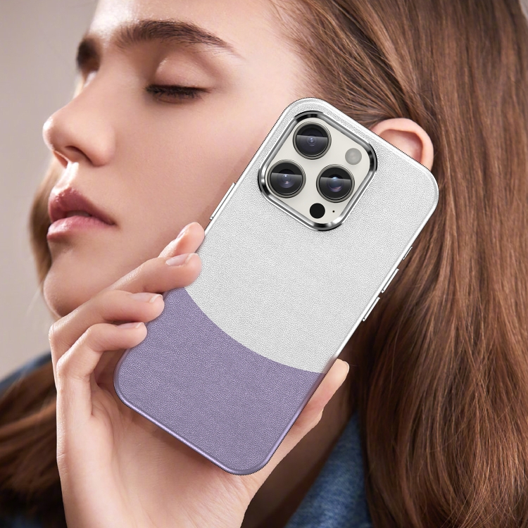 Funda para Teléfono iPhone 15 Pro Magsafe Magnetic TPU + PC Textura de Cuero (Púrpura Claro)