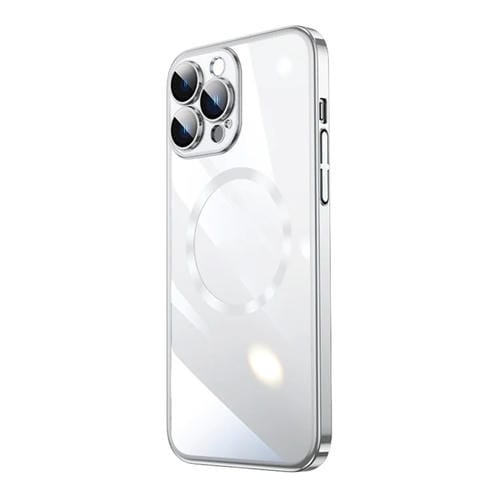 Estuche para Teléfono iPhone 15 Pro Magsafe con PC Galvanizada Magnética (Plateado)