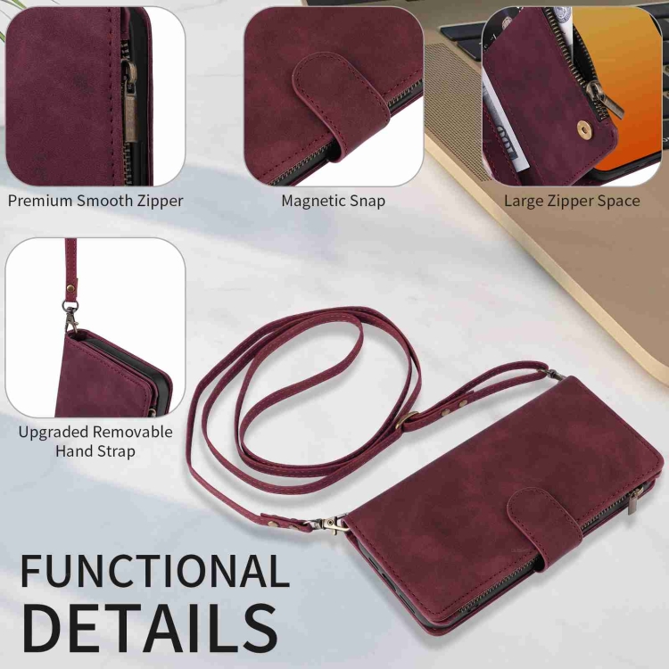 Funda para Teléfono iPhone 15 Pro Max Crossbody Cuero con Cremallera y Ranura para Tarjetas (Rojo Vino)