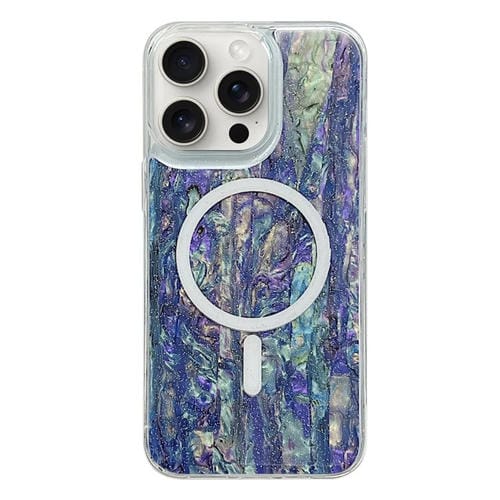 Funda para Teléfono iPhone 15 Pro Max Shell Texture Multicolor Magsafe TPU (Azul Pavo Real)