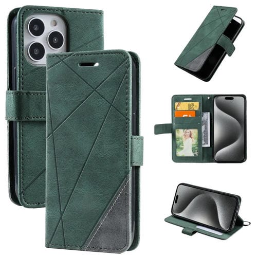 Funda para Teléfono iPhone 15 Pro Max Skin Feel Empalme Cuero (Verde)
