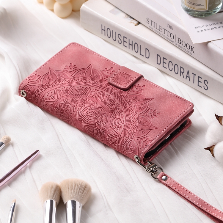 Funda para iPhone 15 Pro Multi-Card Totem Cuero con Cremallera (Rosa)