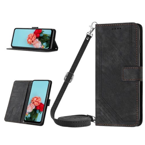 Funda para iPhone 15 Skin Feel Stripe Pattern de Cuero con Cordón (Negro)