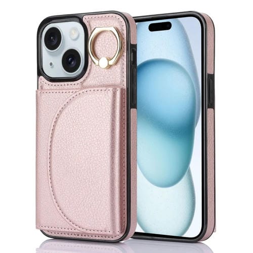 Funda para Teléfono Ym006 para iPhone 15 con Soporte para Anillo y Tarjeta (Oro Rosa)
