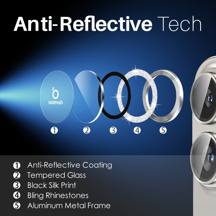 Protector de Lente de Cámara Northjo para iPhone 16/16 Plus con Película de Anillo de Metal y Vidrio Templado (Plata)