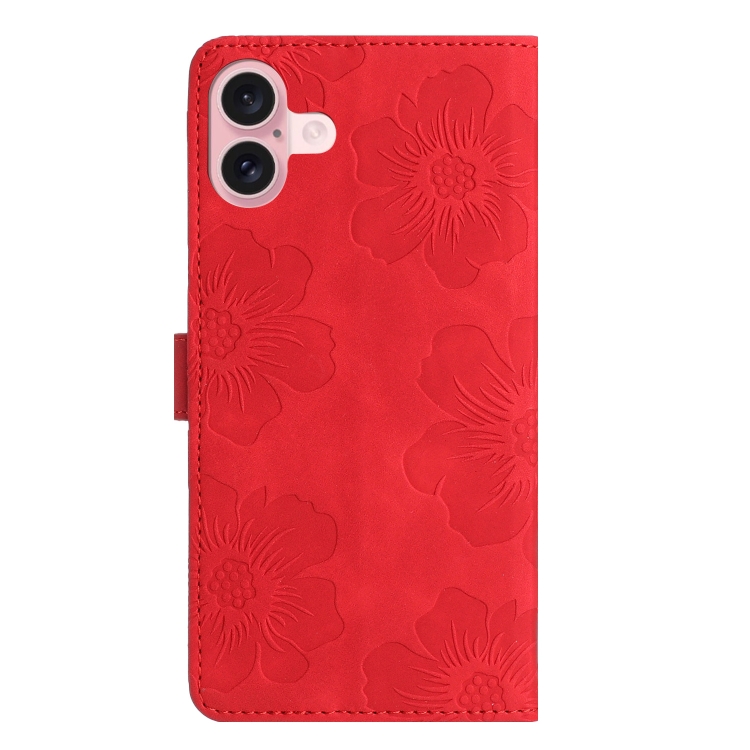 Funda de Cuero para iPhone 16 Estampado de Flores (Rojo)