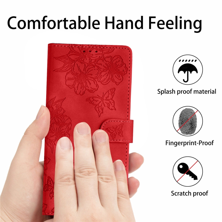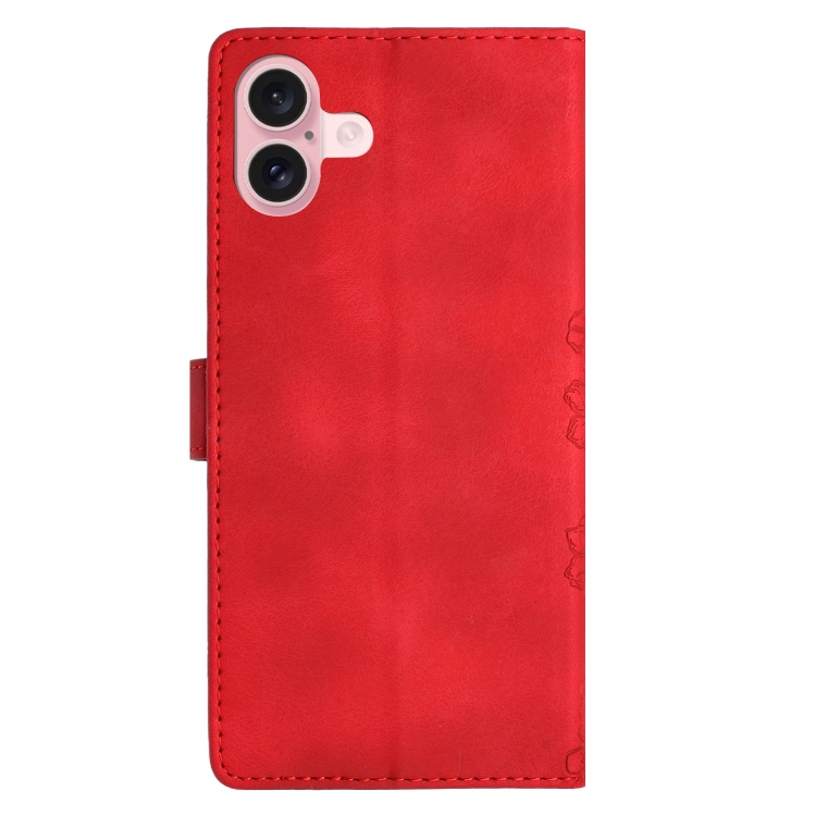 Funda para Teléfono iPhone 16 PU Sensación Piel Mariposa Flor Cerezo (Rojo)