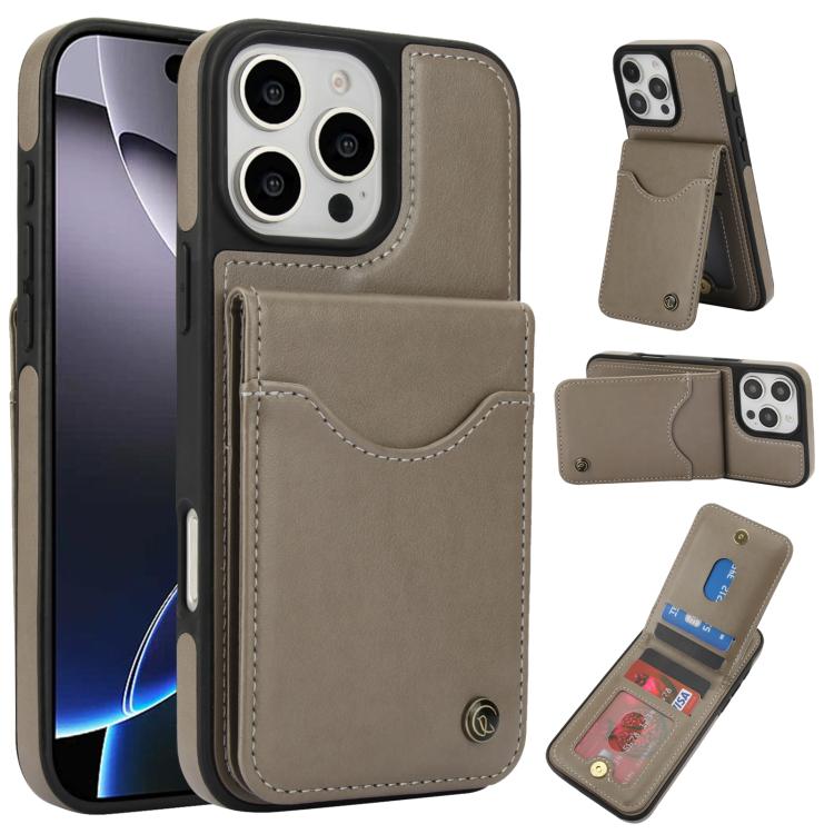 Funda de Cuero Awquer para iPhone 16 Pro Max con Tapa Vertical para Tarjetas y Soporte (Gris)