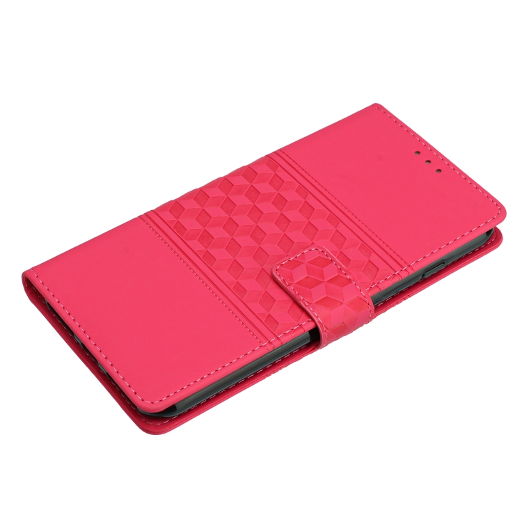Funda para iPhone 16 Pro Max Cuero Sensación Piel Relieve Diamante (Rojo)