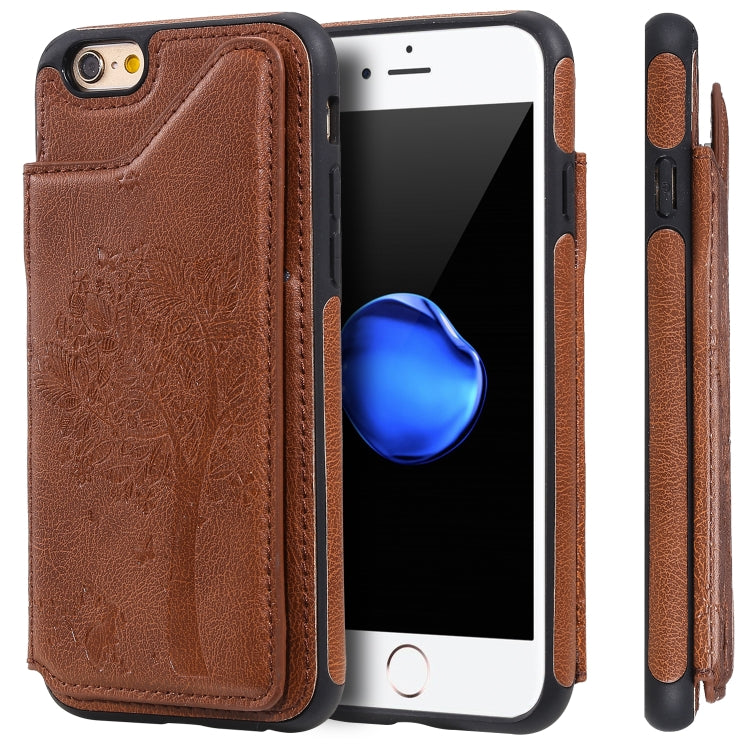 Funda Protectora para iPhone 6 & 6S con Patrón de Relieve Árbol de Gato, Ranuras para Tarjetas, Marco de Fotos y Soporte (Marrón)