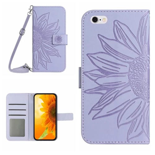 Funda para iPhone 6 Skin Feel Sun Flower Pattern Flip Cuero con Cordón (Púrpura)