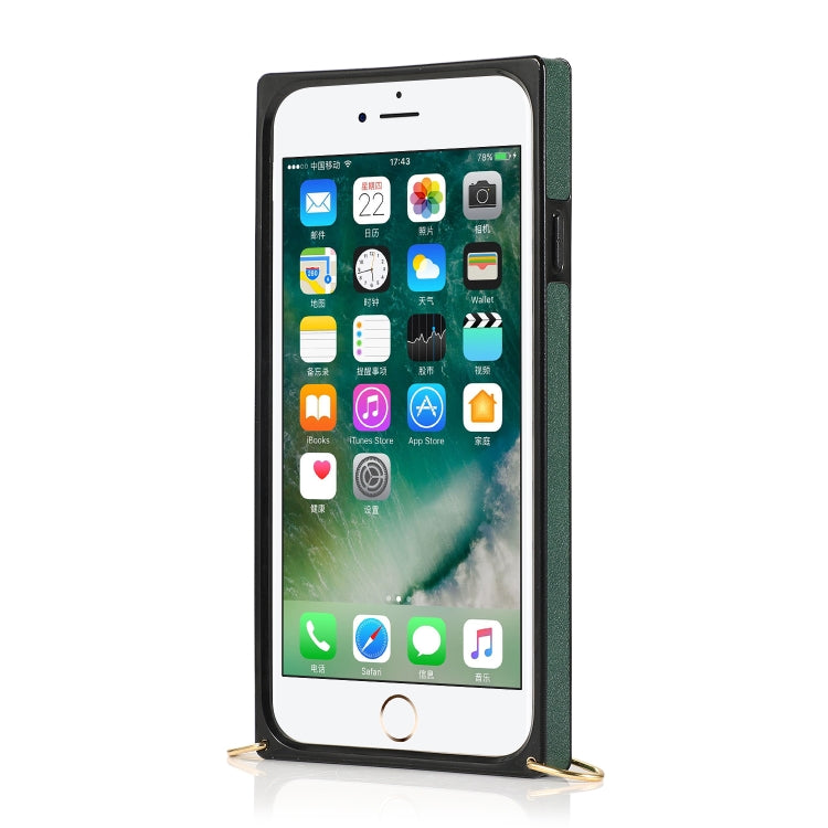 Correa de Muñeca PU + Estuche TPU a Prueba de Golpes para iPhone 7/8 SE 2020 con Cordón y Ranura para Tarjeta (Verde)