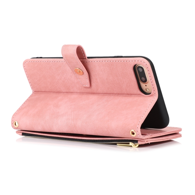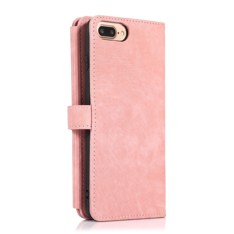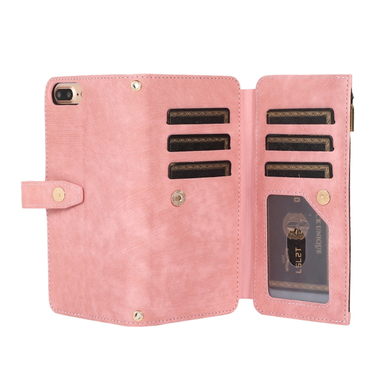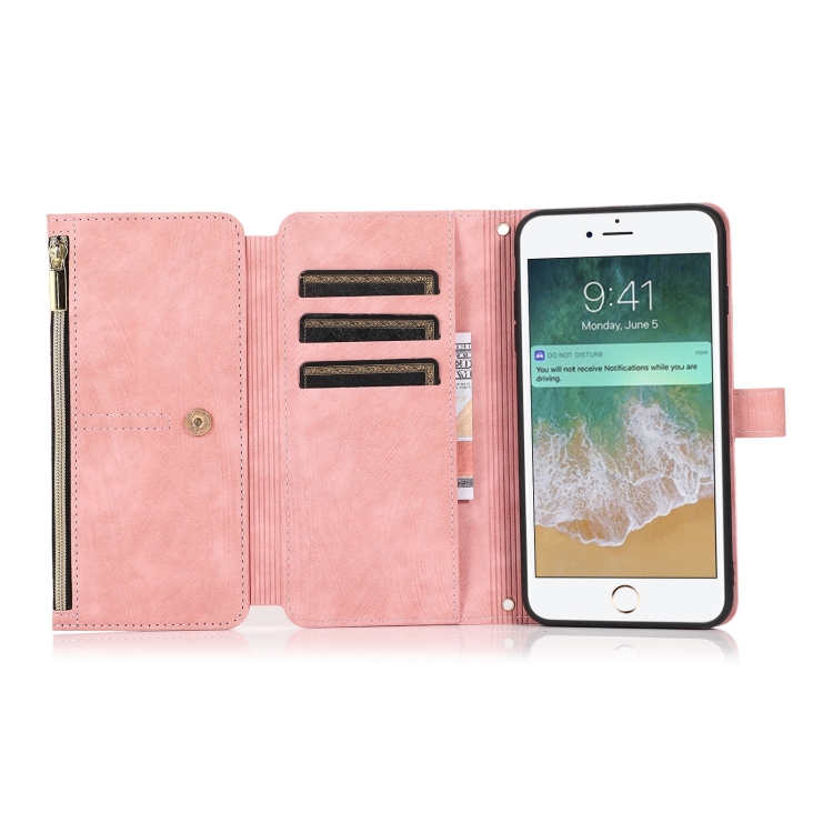 Funda para Teléfono iPhone 7 Plus 8 Plus Dream 9-Card Wallet Zipper Bag de Cuero (Rosa)