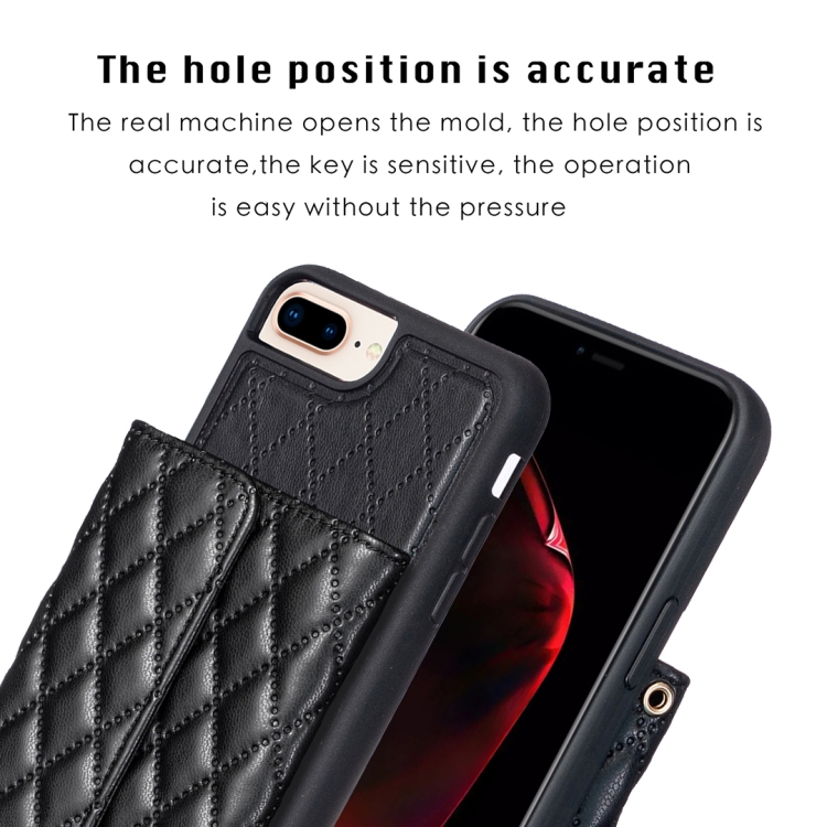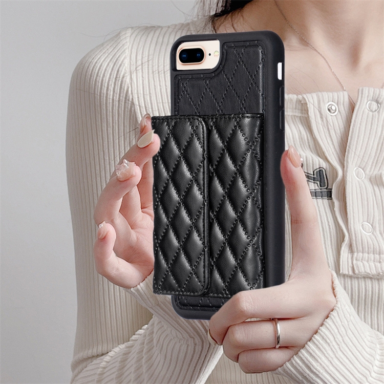 Estuche de teléfono Apple iPhone 7 Plus 8 Plus Cuero Rómbico con Billetera Horizontal (Negro)