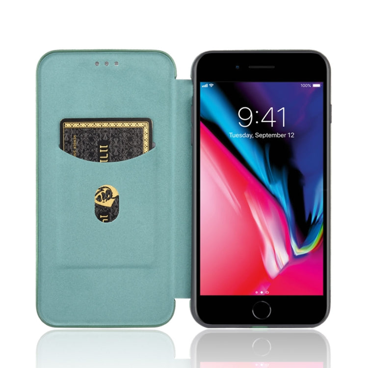 Funda para iPhone 7 Plus 8 Plus Textura Fibra de Carbono Flip Horizontal Magnético TPU PC Cuero PU con Ranura para Tarjeta (Verde)