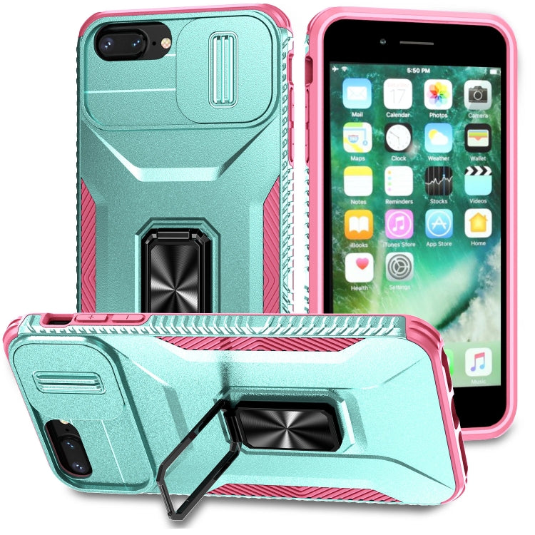 Funda para Teléfono iPhone 7 Plus con Soporte Deslizante Camshield (Gris Verde + Rosa)
