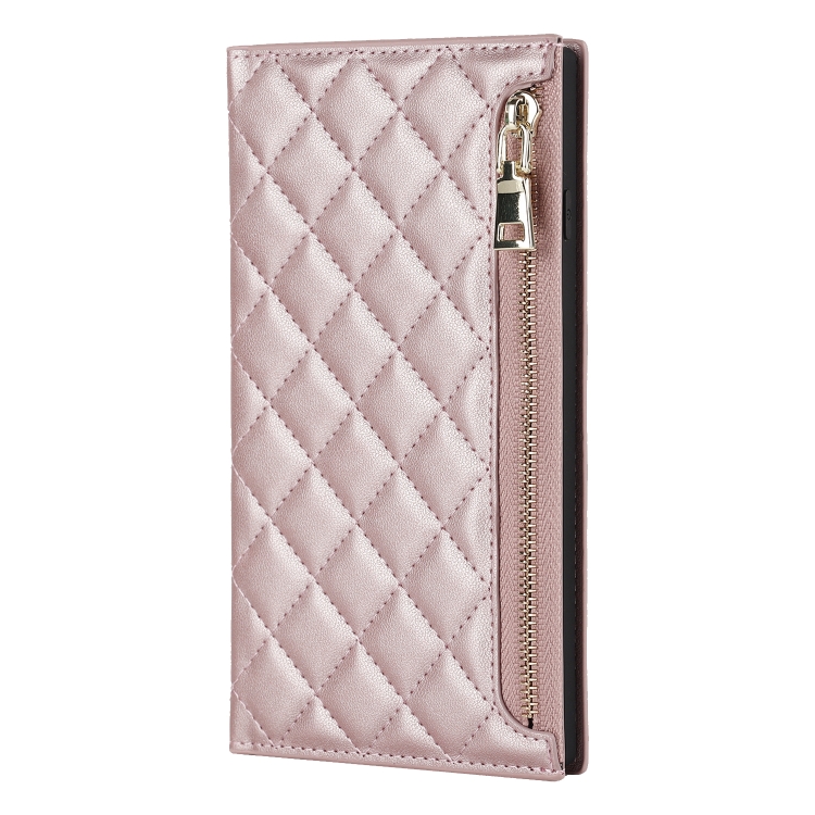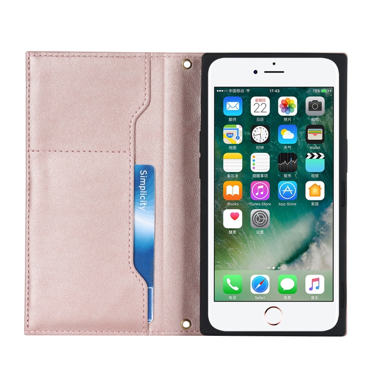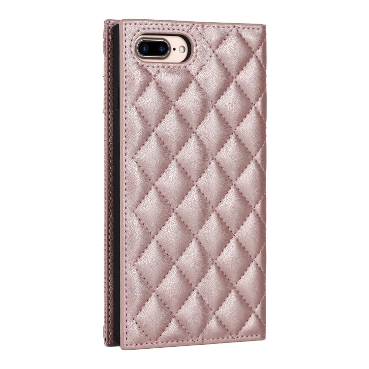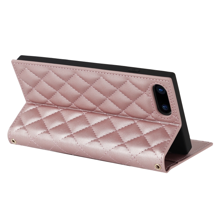 Funda de Cuero con Cremallera para iPhone 8 Plus y 7 Plus Grid Texture (Oro Rosa)