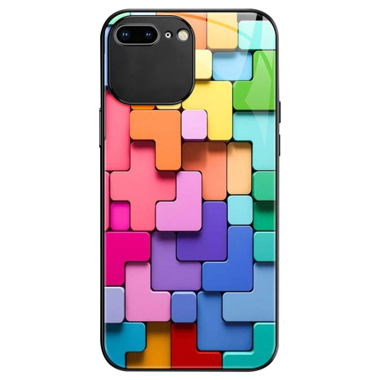 Funda para iPhone 8 Plus 7 Plus Patrón Ladrillos Juguete Caja Vidrio a Prueba de Golpes (Negro)