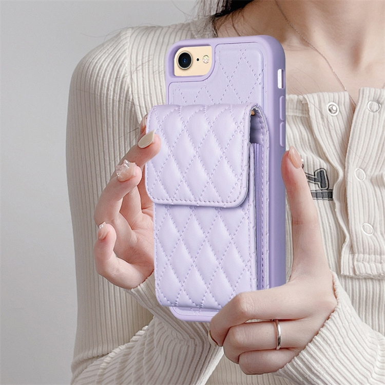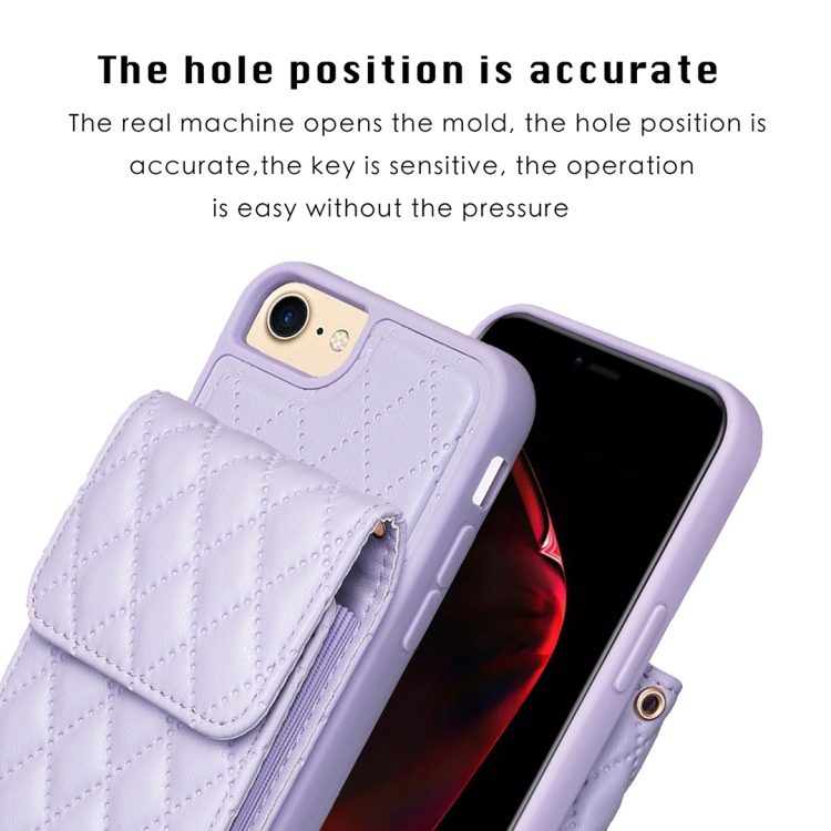 Estuche de Teléfono Cuero iPhone SE 2022 SE 2020 7 8 Billetera Vertical (Púrpura)