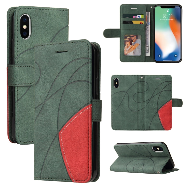 Estuche de Cuero PU para iPhone X Xs Tapa Horizontal Empalme Dos Colores Soporte Ranuras Tarjetas Billetera (Verde)