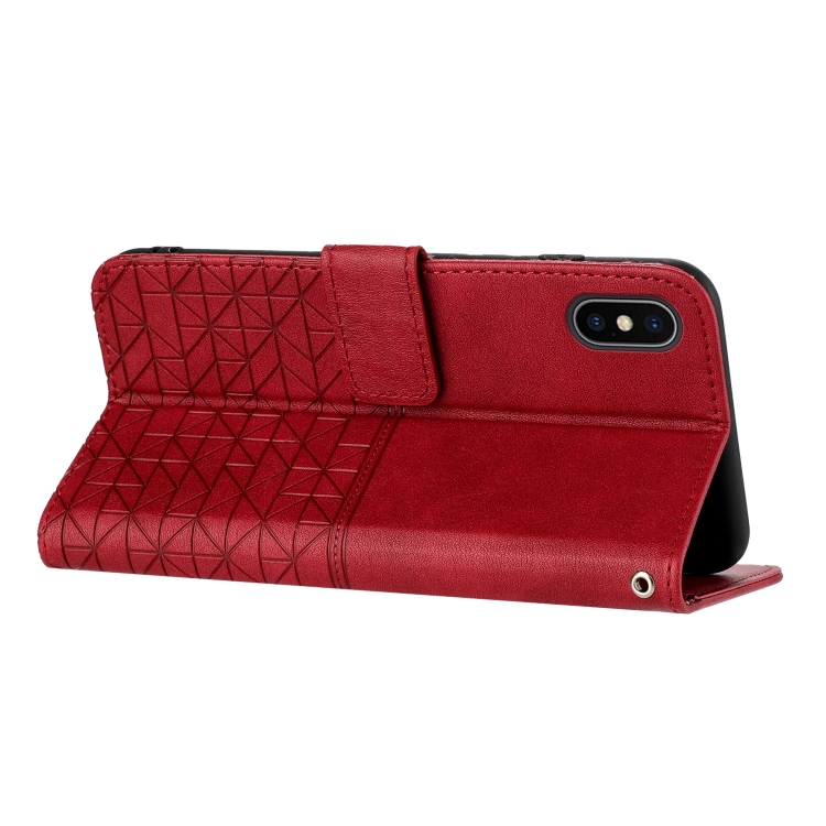 Funda para iPhone X / Xs Cuero Textura Rómbica con Cordón (Rojo)