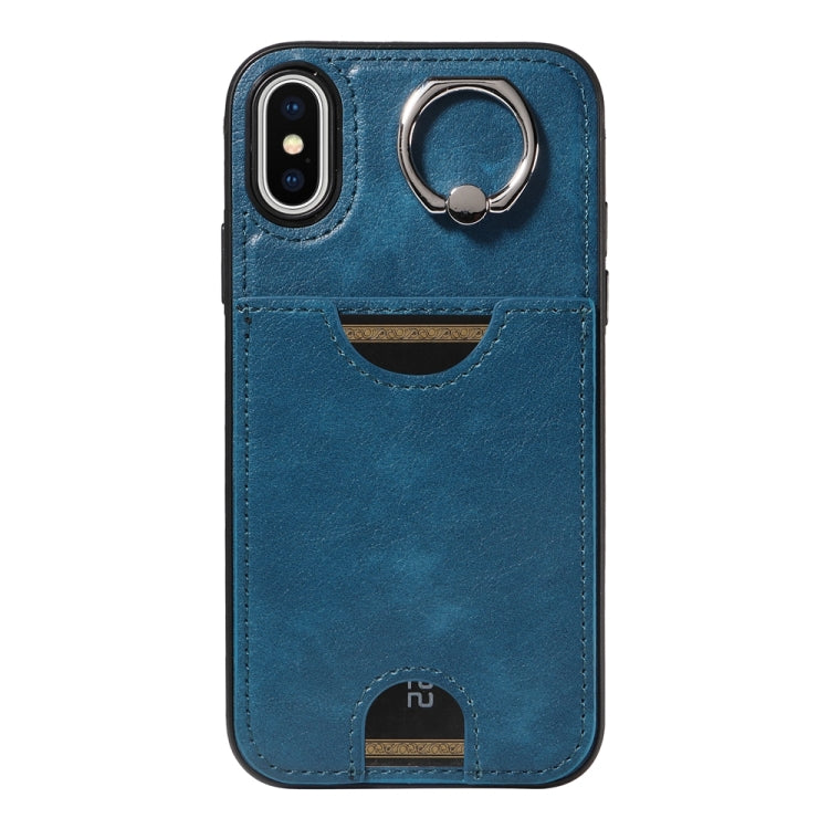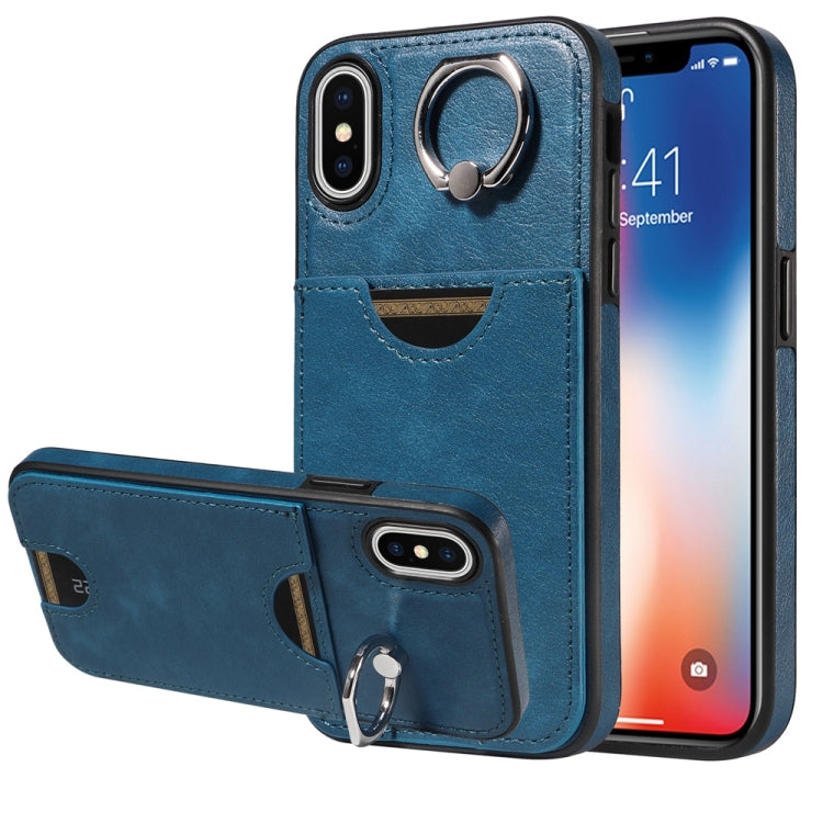 Funda para Teléfono iPhone X Xs con Soporte para Anillo y Ranura para Tarjeta (Azul)