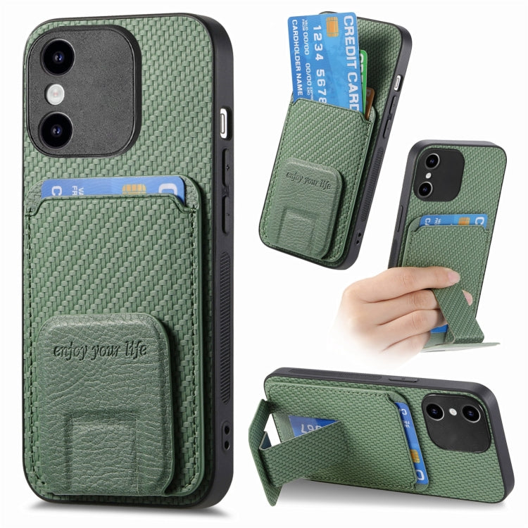 Funda para Teléfono iPhone X / Xs con Soporte Plegable y Bolsa para Tarjetas Fibra de Carbono (Verde)