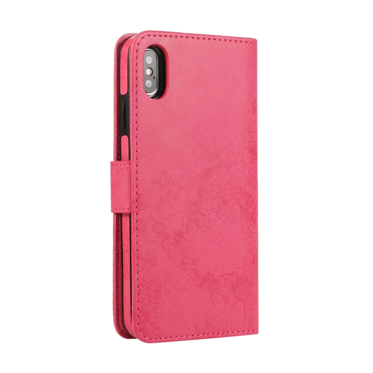 Funda para iPhone X Xs Klt888-2 Retro 2 en 1 Cuero TPU PU Tapa Horizontal Magnética Soporte Ranuras Tarjetas Marco Fotos Billetera (Rosa Roja)