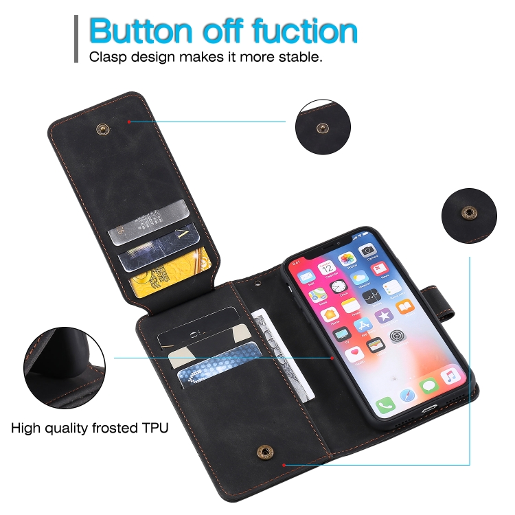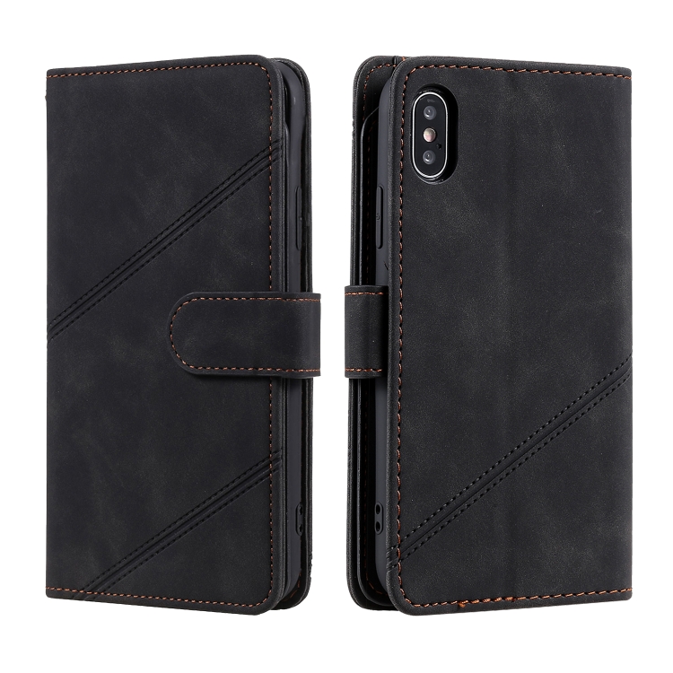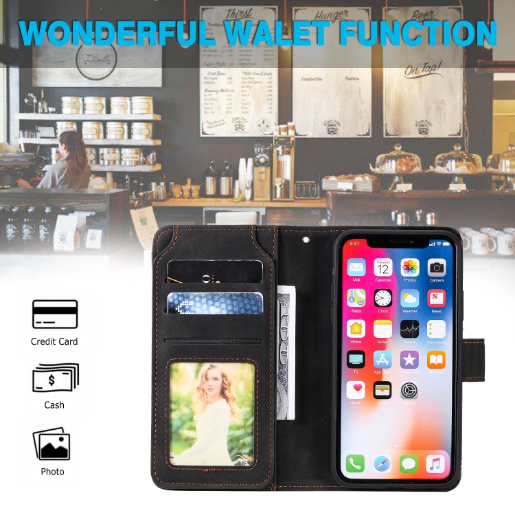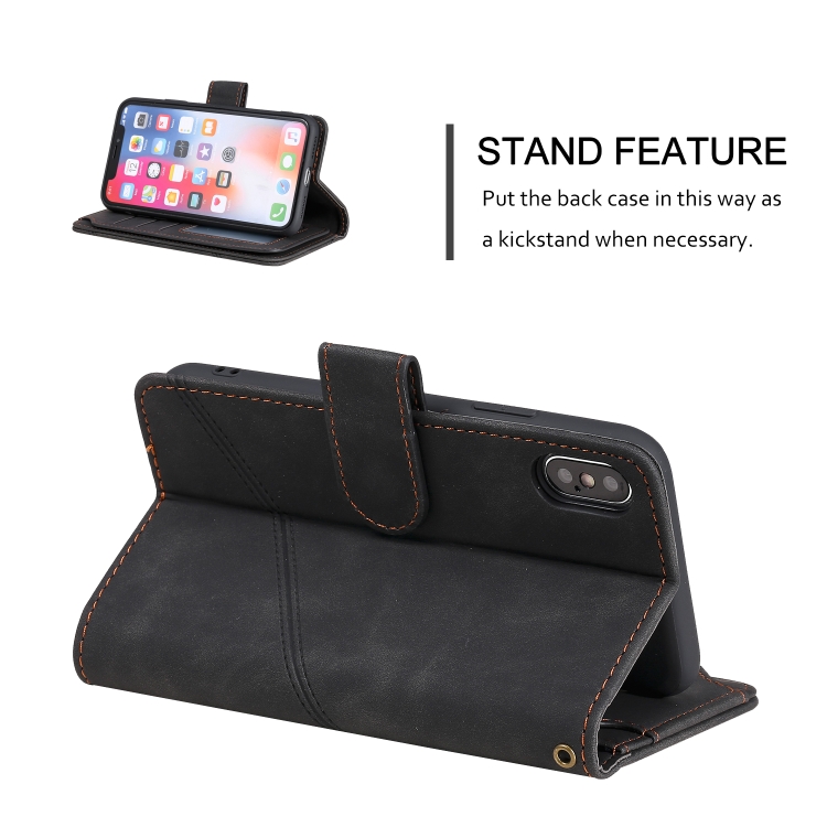 Estuche para iPhone X Xs Skin Feel Business Cuero de PU Tapa Horizontal Soporte Ranuras Tarjetas Billetera Cordón Marco Fotos (Negro)