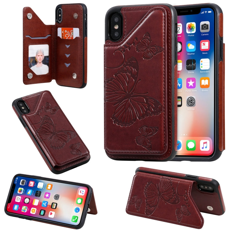 Funda Protectora para iPhone X y Xs a Prueba de Golpes con Estampado de Mariposas Soporte Ranuras para Tarjetas Marco de Fotos (Marrón)