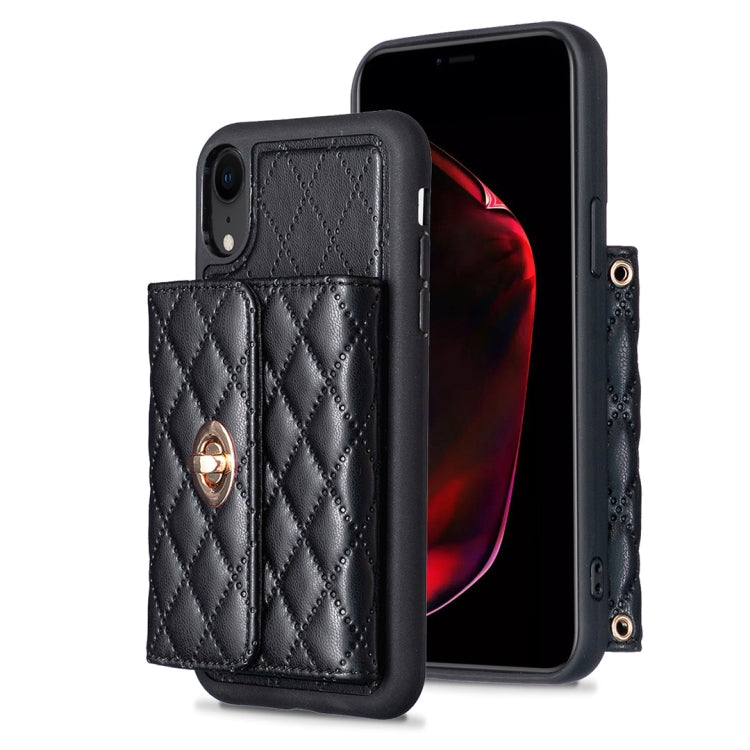 Funda para iPhone Xr Rombal Caja de Teléfono Cuero con Hebilla de Metal Horizontal (Negro)