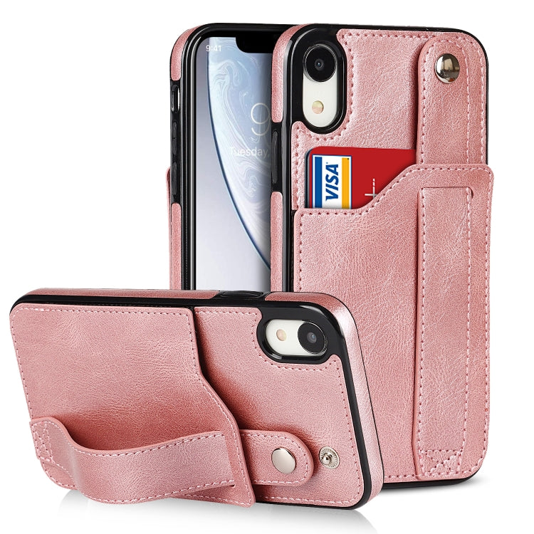 Funda para iPhone Xr Crazy Horse Texture Cuero TPU + PU Prueba de Golpes Ranura Tarjeta Correa (Oro Rosa)