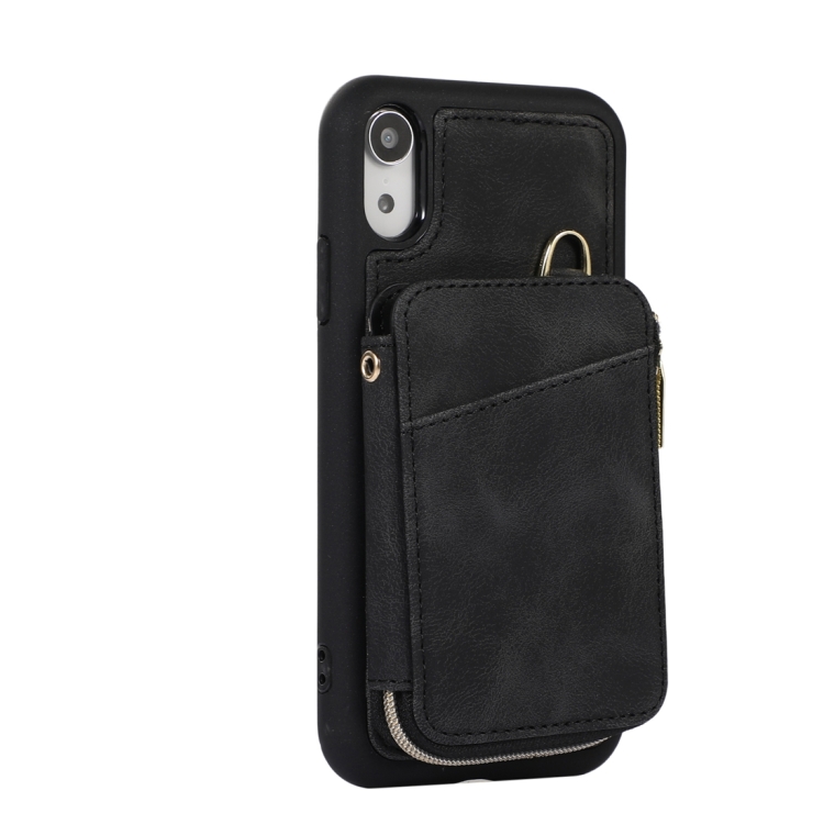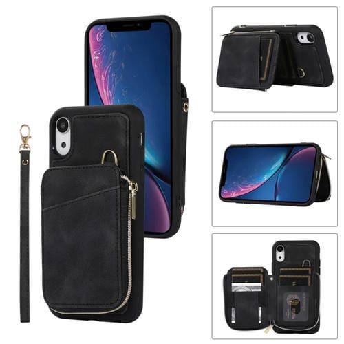 Funda para iPhone Xr Bolsa Cremallera Tarjeta Contraportada Caja del Teléfono (Negro)