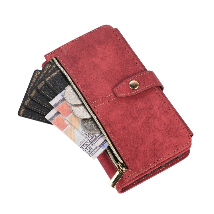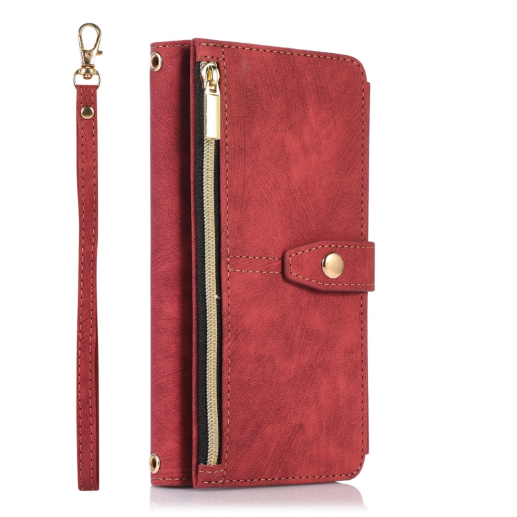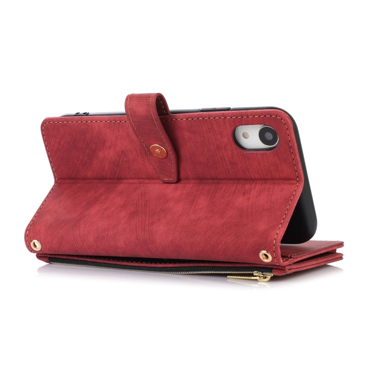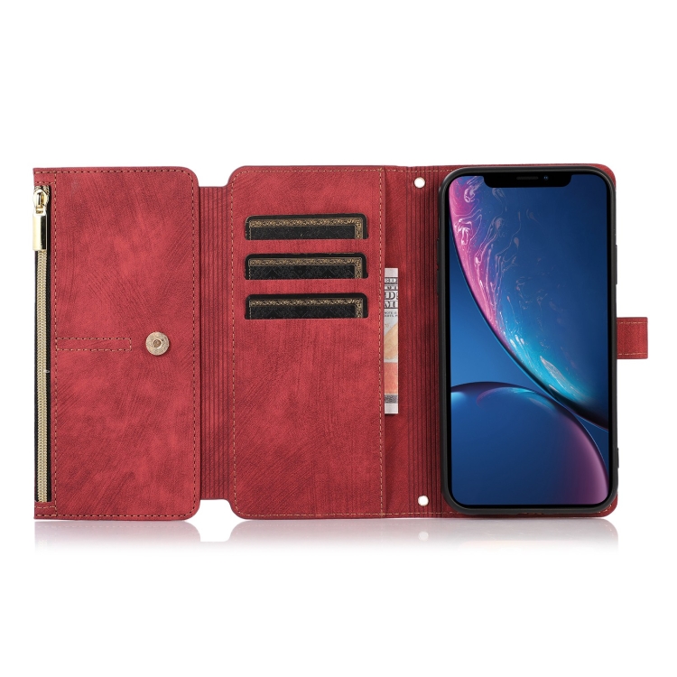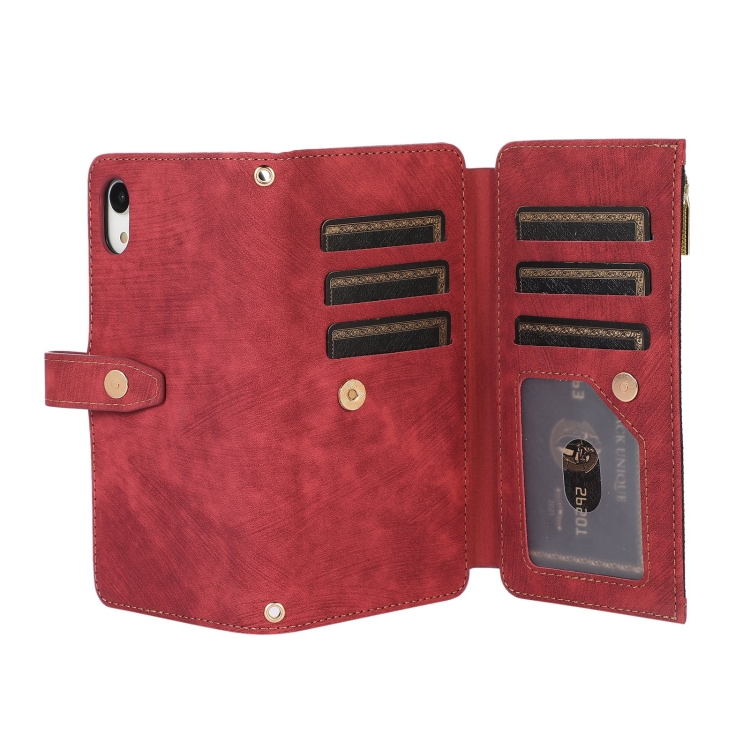 Funda para Teléfono iPhone Xr Dream 9-Card Wallet Zipper Bag Cuero (Rojo)