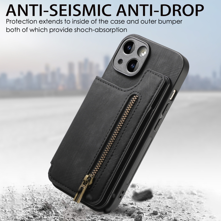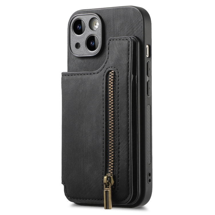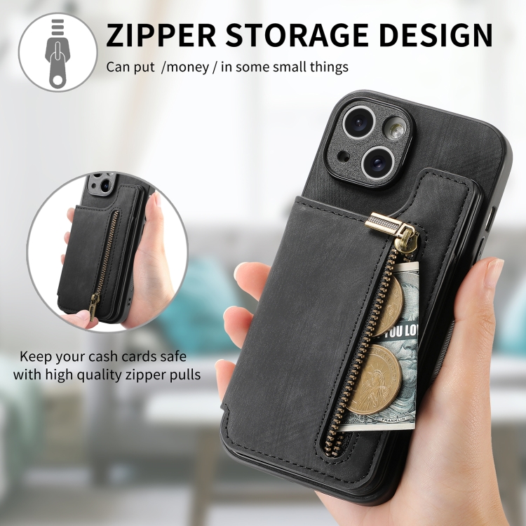 Funda para iPhone Xr Cuero Retro con Cremallera y Billetera (Negro)