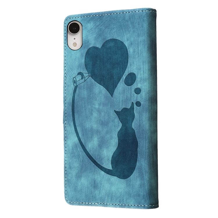 Funda de Cuero para Teléfono iPhone Xr Pen Heart Cat En Relieve (Azul)