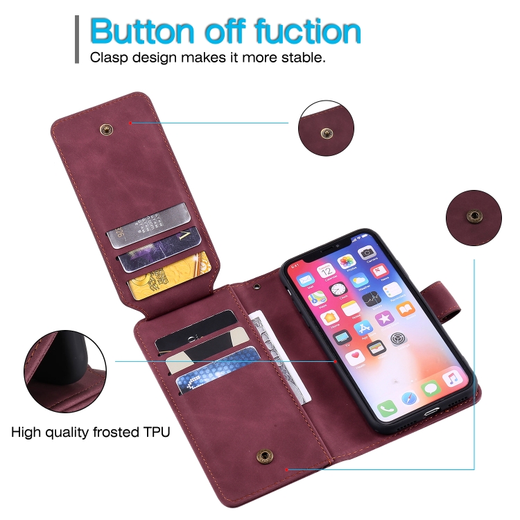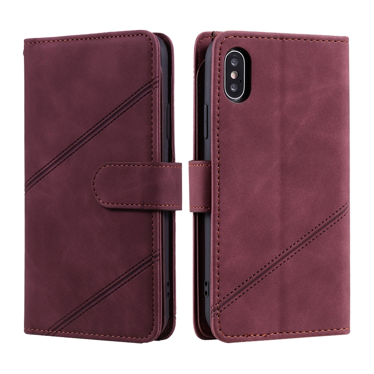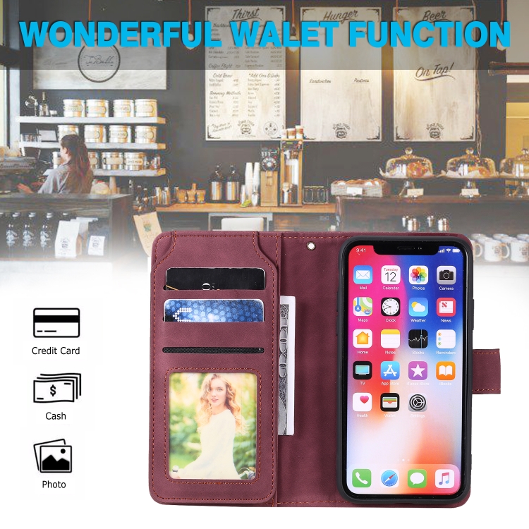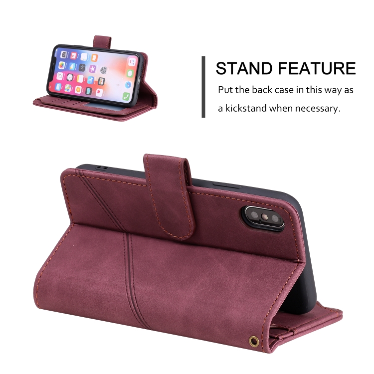 Estuche para iPhone Xr Skin Feel Business de Cuero PU con Tapa Horizontal Soporte Ranuras Tarjetas Billetera Cordón Marco Fotos (Rojo)