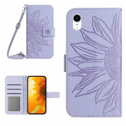 Funda Flip de Cuero para iPhone Xr Skin Feel Sun Flower Pattern con Cordón (Púrpura)