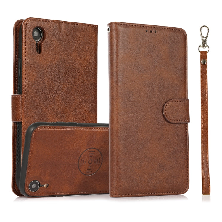 Funda para iPhone Xr Textura de Becerro 2 En 1 Cubierta Trasera Magnética Desmontable de Cuero con Tapa Horizontal Soporte Ranuras Tarjetas Billetera Marco Fotos (Marrón)