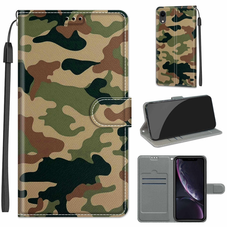 Funda para iPhone Xr Voltaje Dibujo Coloreado Cierre Magnético Cuero de Pu con Tapa Horizontal Soporte Ranuras para Tarjetas (Camuflaje Amarillo Verde)